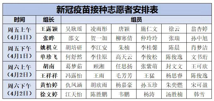 藝術(shù)學院新冠接種志愿者名單
