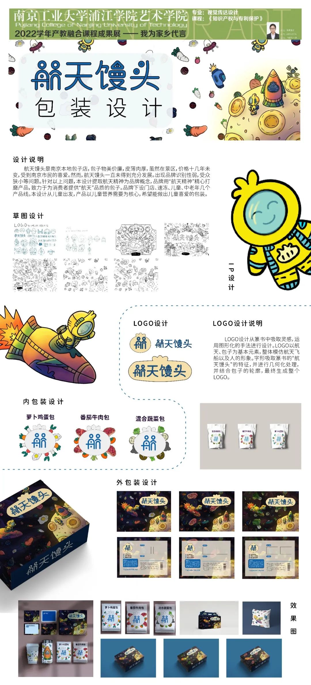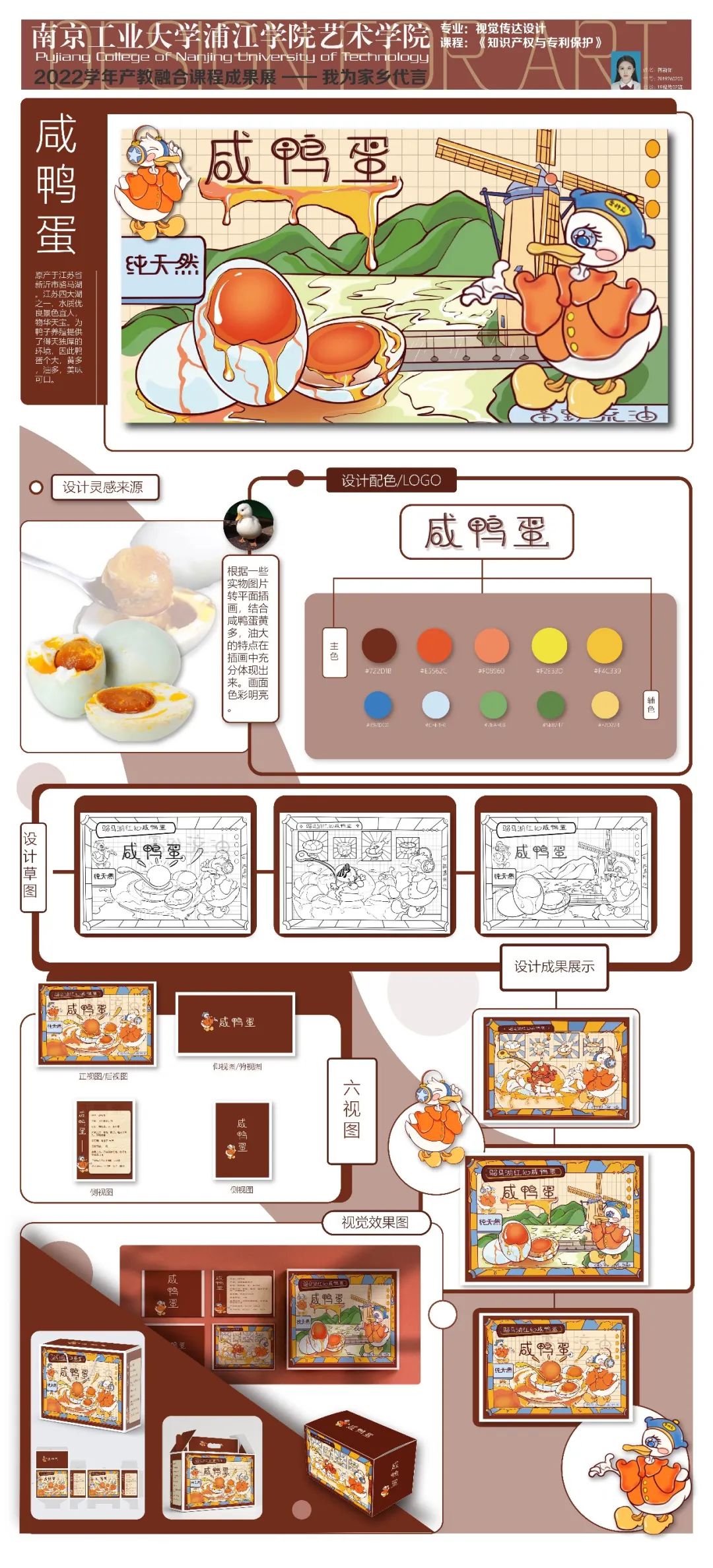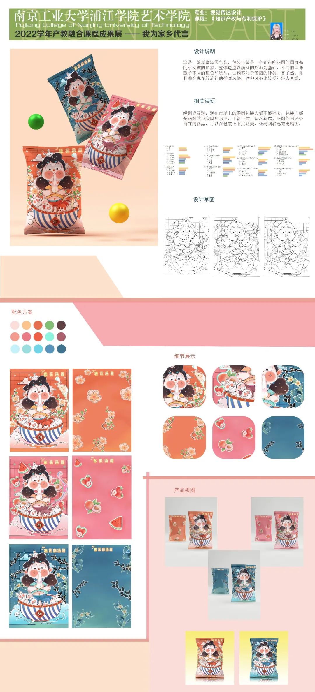 今年是第22個知識產(chǎn)權(quán)日,主題為識產(chǎn)權(quán)與青年:銳意創(chuàng)新,建設(shè)未來。為了培養(yǎng)當代大學生的擔當,本課程結(jié)合“抗擊疫情”、“人口老齡化”、“家鄉(xiāng)建設(shè)”等主題進行設(shè)計。學生們從前期調(diào)研、頭腦風暴到設(shè)計草圖再到深化設(shè)計,用實際行動體現(xiàn)后疫情時代大學生的責任,更加關(guān)注老人的需求;通過家鄉(xiāng)特產(chǎn)包裝再設(shè)計,以此為家鄉(xiāng)代言;為家鄉(xiāng)建設(shè)為社會發(fā)展貢獻一份力量......19級產(chǎn)品設(shè)計專業(yè)、視覺傳達設(shè)計專業(yè)的同學們充滿創(chuàng)意,學習態(tài)度端正,學習氛圍濃厚,感謝同學們的認真、努力,相信他們未來可期......