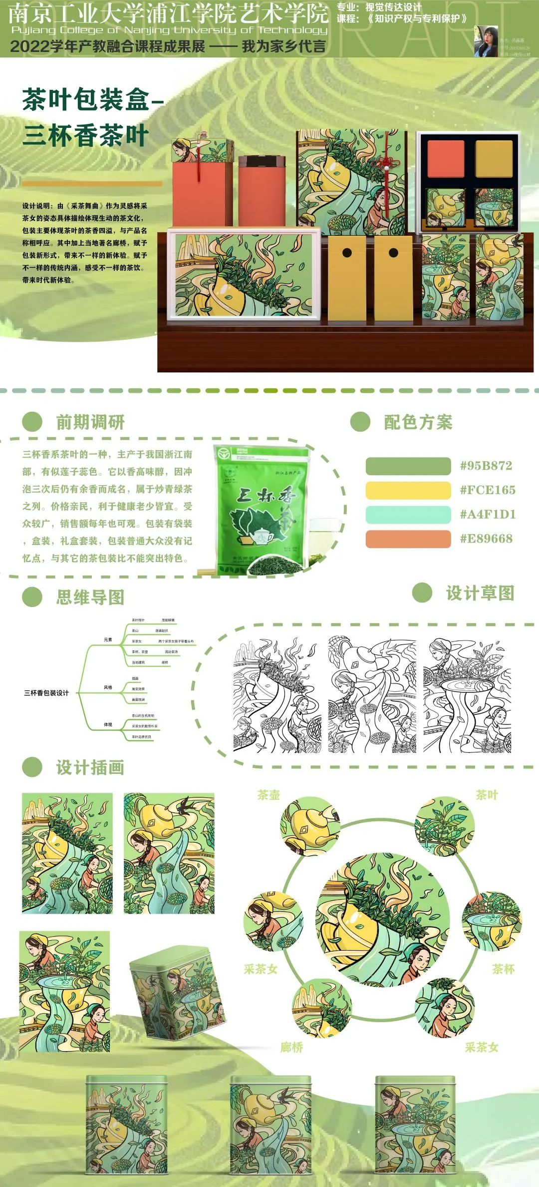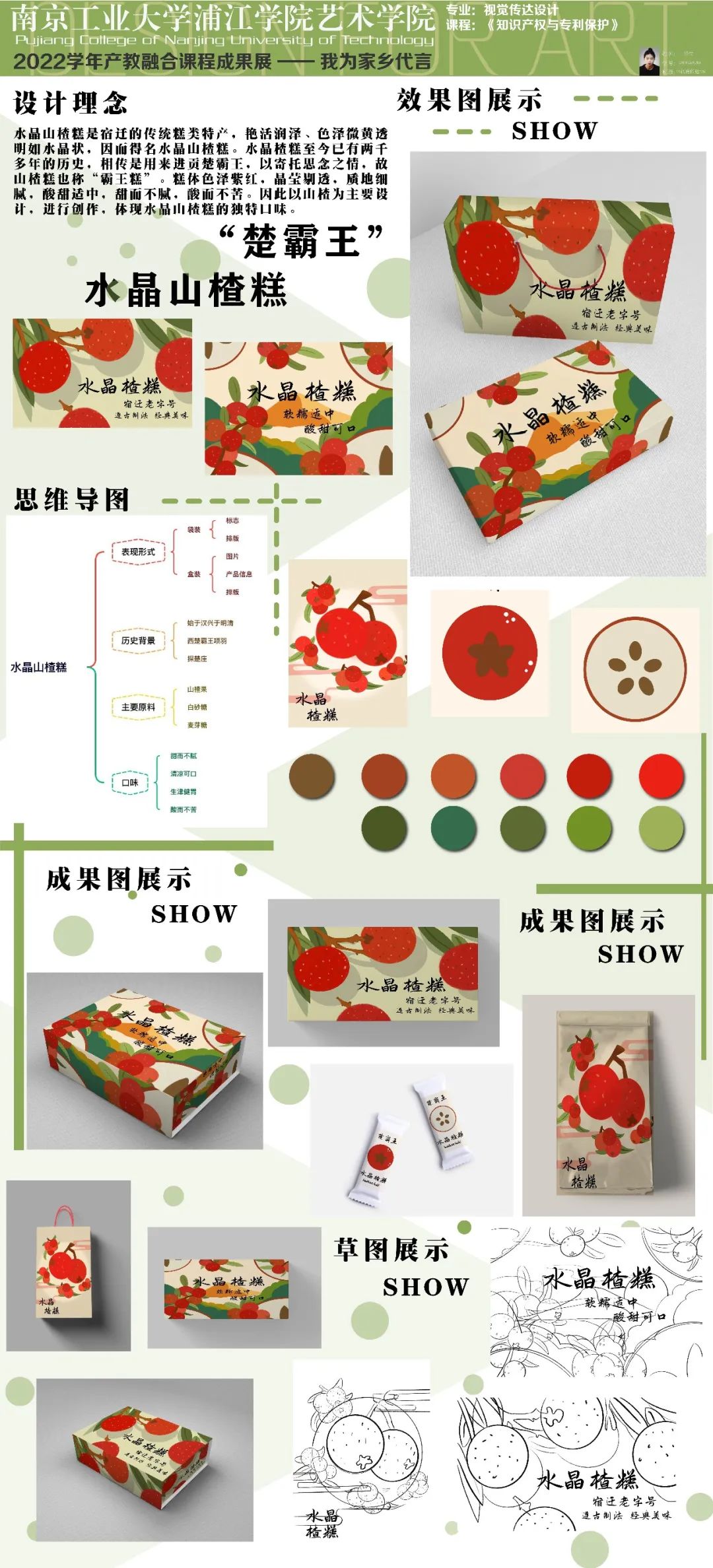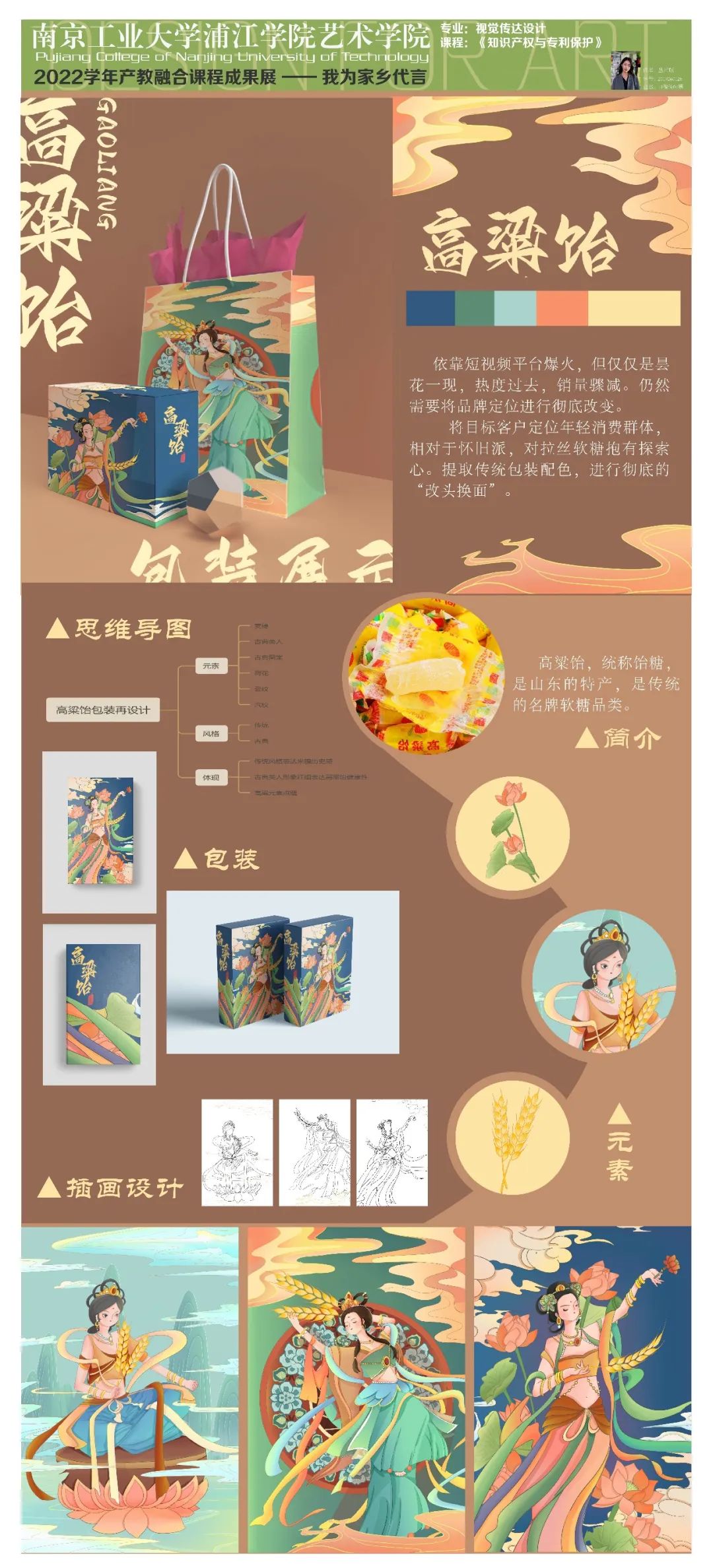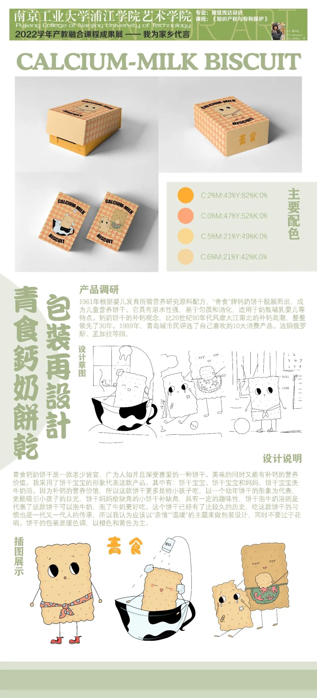 今年是第22個知識產(chǎn)權(quán)日,主題為識產(chǎn)權(quán)與青年:銳意創(chuàng)新,建設(shè)未來。為了培養(yǎng)當代大學生的擔當,本課程結(jié)合“抗擊疫情”、“人口老齡化”、“家鄉(xiāng)建設(shè)”等主題進行設(shè)計。學生們從前期調(diào)研、頭腦風暴到設(shè)計草圖再到深化設(shè)計,用實際行動體現(xiàn)后疫情時代大學生的責任,更加關(guān)注老人的需求;通過家鄉(xiāng)特產(chǎn)包裝再設(shè)計,以此為家鄉(xiāng)代言;為家鄉(xiāng)建設(shè)為社會發(fā)展貢獻一份力量......19級產(chǎn)品設(shè)計專業(yè)、視覺傳達設(shè)計專業(yè)的同學們充滿創(chuàng)意,學習態(tài)度端正,學習氛圍濃厚,感謝同學們的認真、努力,相信他們未來可期......