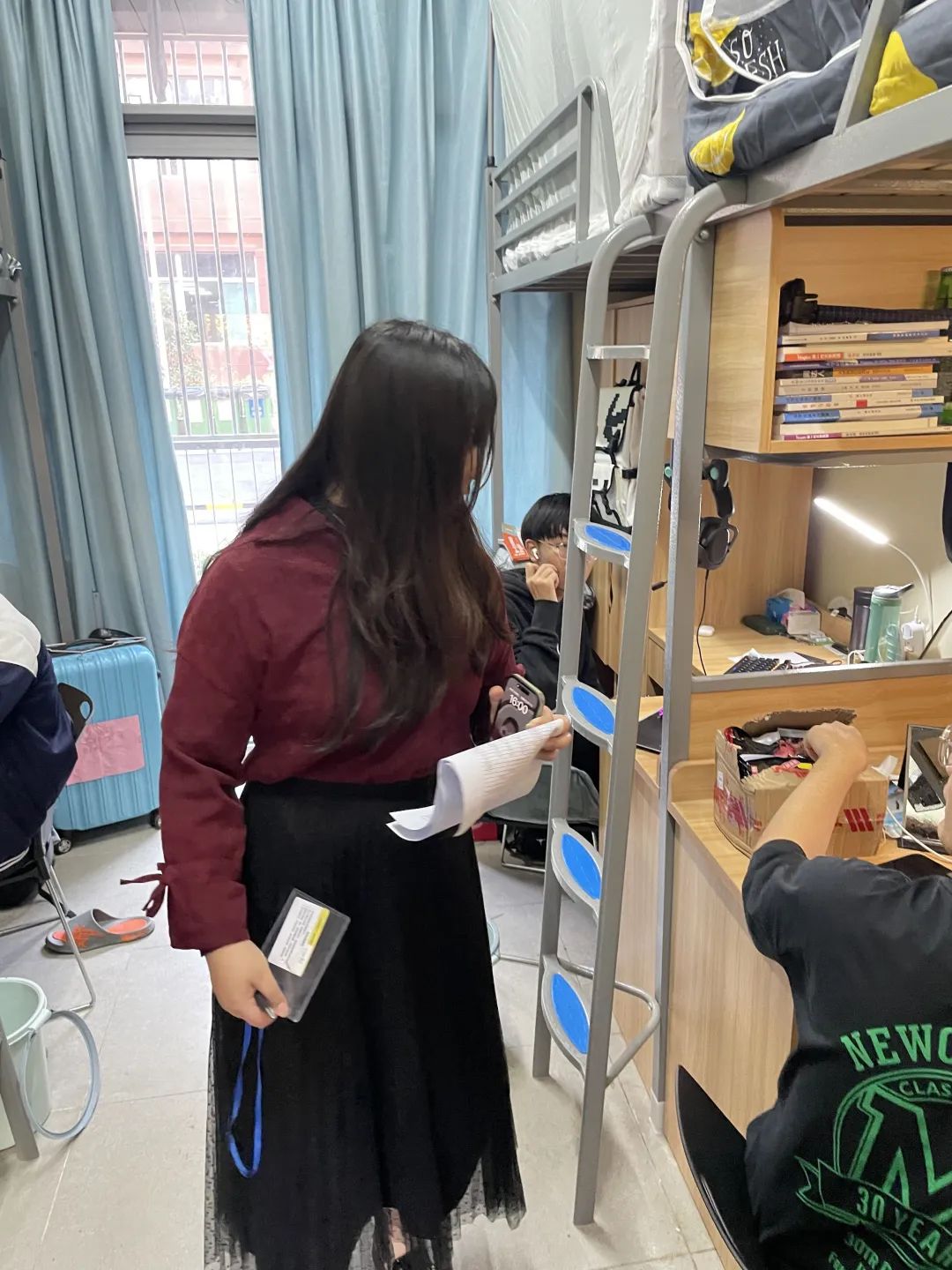 各位老師首先進(jìn)行內(nèi)務(wù)環(huán)境檢查,如遇“臟、亂、差”,存在違規(guī)電器等情況,依嚴(yán)重程度對其進(jìn)行提醒、警告并做好記錄,同時(shí)也對宿舍安全用電問題做出提醒。
