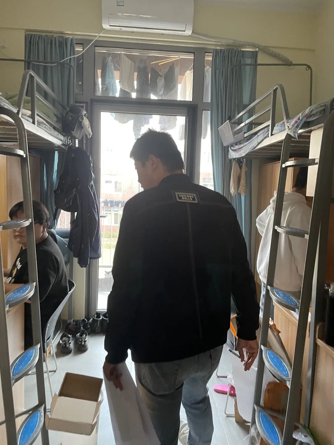 為了進(jìn)一步加強(qiáng)學(xué)生安全教育,規(guī)范宿舍管理,提升宿舍衛(wèi)生狀況,機(jī)電學(xué)院肖俊英副院長以及學(xué)工辦全體輔導(dǎo)員帶領(lǐng)機(jī)電學(xué)院“一站式”學(xué)生社區(qū)服務(wù)中心的同學(xué)于2022年10月12日下午15:00對全院男生宿舍進(jìn)行安全檢查。
