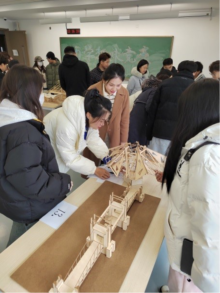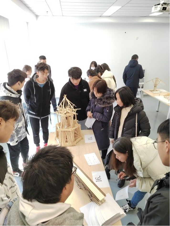 本屆大賽由土木工程專(zhuān)業(yè)主任助理潘金龍老師主持,承擔(dān)了從策劃、動(dòng)員到組織實(shí)施的全部工作;院學(xué)生會(huì)楊昊宇等同學(xué)承擔(dān)了評(píng)審現(xiàn)場(chǎng)的布置工作。大賽由學(xué)院各專(zhuān)業(yè)的教師代表?yè)?dān)任評(píng)委,教學(xué)院長(zhǎng)何培玲教授擔(dān)任評(píng)委會(huì)主席。何院長(zhǎng)和各位評(píng)委老師對(duì)本次結(jié)構(gòu)設(shè)計(jì)大賽的舉辦意義及參賽同學(xué)們的積極參與給予充分的肯定和鼓勵(lì)。