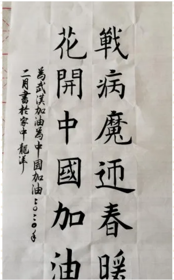 這是毛澤東主席于1949年為紀(jì)念南京解放寫下的詩(shī)篇,這次的疫情攻堅(jiān)戰(zhàn)激烈而迅猛,但我相信,我們,我們中國(guó)人民,終將會(huì)有凱旋的那一天。寒冬終將過去,春天也會(huì)如約而至。我們有一天也可以有如此豪邁揮毫潑墨慶祝疫情攻堅(jiān)戰(zhàn)的勝利。讓我們一起樹立信心,戰(zhàn)勝病毒,一起迎接新的美好!