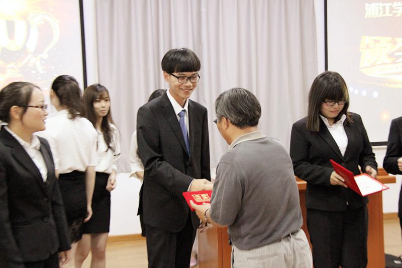 總結(jié)陳詞結(jié)束后,大家還未從精彩的辯論中緩過神來,浦江學院14位青春靚麗的舞蹈團小演員就登上了舞臺,表演了曾經(jīng)在高校大學生手語操比賽中獲過二等獎的手語操節(jié)目《千山萬水》,小演員靈動的表演也贏得了現(xiàn)場觀眾由衷的贊美。表演一結(jié)束,主持人就登臺宣布,酒店學院獲得了本次辯論賽的冠軍,而商學院屈居亞軍,語言汽服學院和機電學院則并列季軍,最佳辯手則由酒店學院的吳小河同學獲得。李志強副校長登臺點評,對本屆辯論賽工作進行了肯定,同時向到場師生強調(diào)了大學生心理健康在高校學生工作中的重要性。最后李校長為冠軍學院隊伍頒獎,接著各位評委為其他獲獎團隊頒獎、合影留念。