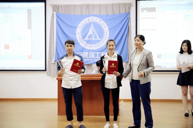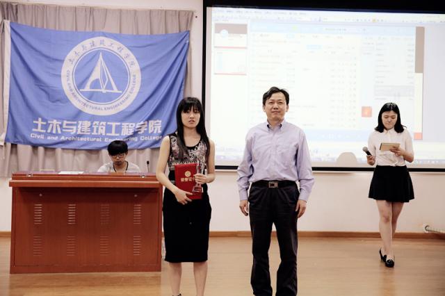 根據(jù)評委老師的合理打分,一二三等獎作品脫穎而出,并由土木與建筑工程學(xué)院馬六逵院長、黨群工作部方潔部長分別為一二三等獎的同學(xué)頒獎。