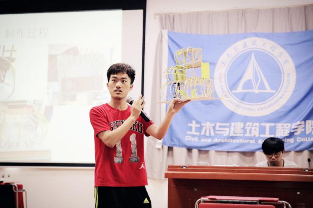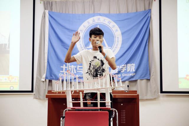 隨著土木專業(yè)的劉建同學(xué)為大家?guī)砹诵D書館的紙板模型,全場氣氛達(dá)到了一個小高潮。劉建同學(xué)也自述了本次活動給他帶來的難忘記憶。