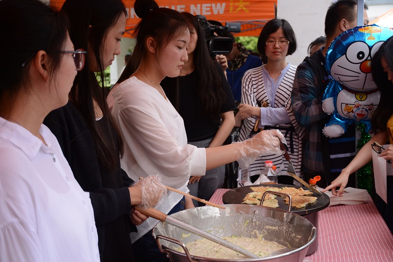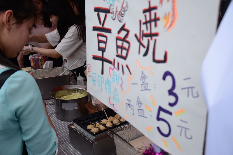 外國語學(xué)院全體同學(xué)積極參與,在活動場地搭建展棚,分為六個區(qū)域進行關(guān)于日本大阪文化的展示與互動。六個主題分別為:大阪燒制作、章魚燒制作、甜點展示、cosplay展示、漫畫展示、日式玩偶制作與展示。此次活動與創(chuàng)業(yè)相結(jié)合,章魚燒、大阪燒、甜點以低價售出,讓學(xué)生品嘗到正宗的日本美食。