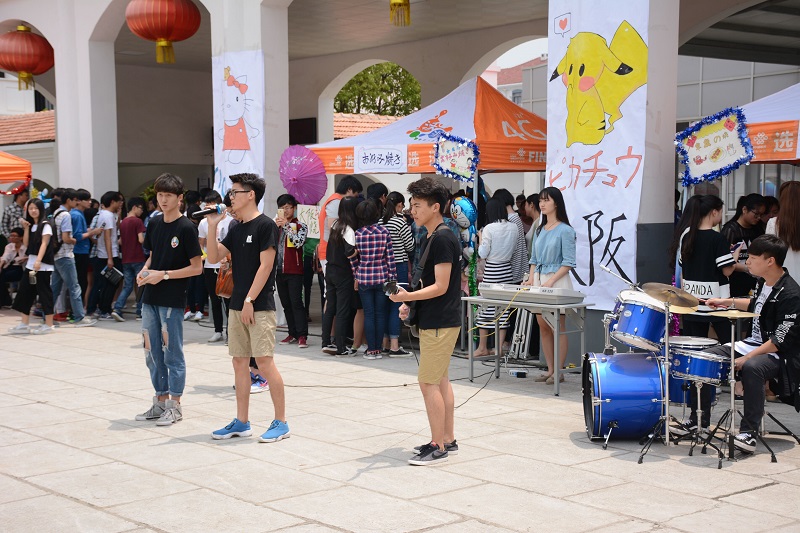 此次活動由院學(xué)生會提出創(chuàng)意并進行不斷討論與增進。經(jīng)過前期兩個多星期的籌劃和準(zhǔn)備,學(xué)生們都緊張又期待地盼望活動的到來?;顒赢?dāng)天,學(xué)生會工作人員早早準(zhǔn)備好各項板塊的材料,活動開始前二十分鐘活動場地開始播放動聽的日文歌曲。這個時候各個區(qū)域的解說員也穿上了優(yōu)雅的和服,他們整裝待發(fā)只為給觀眾一個最好的姿態(tài)?;顒娱_始沒多久,快閃舞蹈、cosplay和樂團的表演者也相繼給全校的觀眾表演了精彩的節(jié)目。與此同時大阪燒、章魚燒和甜點制作的區(qū)域也開始了忙碌的工作,不一會整個活動場地充斥著各類食物的香味。觀眾紛紛前去品嘗,不少觀眾對學(xué)生制作的美味食物贊不絕口。學(xué)校的老師們也前來參觀和品嘗,對活動成果贊不絕口。