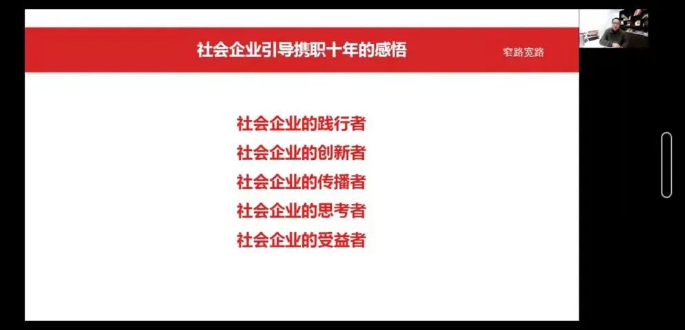 11月16日,《社會(huì)創(chuàng)新與創(chuàng)業(yè)》公選課舉辦了一場(chǎng)社會(huì)企業(yè)家線上講座。本次講座的主題為“社會(huì)企業(yè)與社會(huì)創(chuàng)新”,邀請(qǐng)了“攜職”社企創(chuàng)辦人溫少波老師,講座由公益慈善管理學(xué)院楊奇維老師主持。