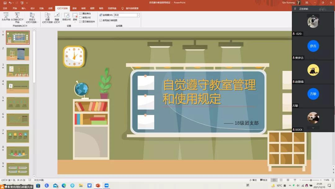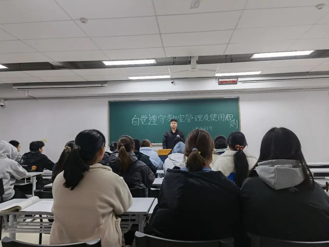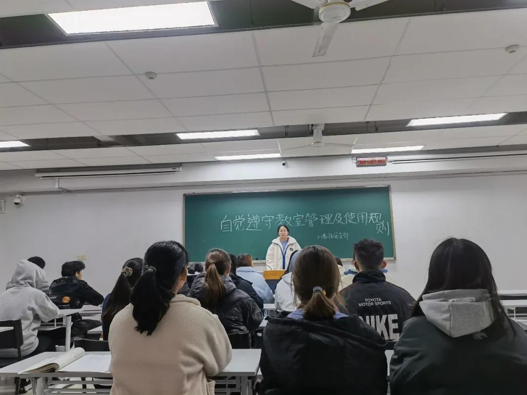 在陳思丹同學(xué)的帶領(lǐng)下,21級的同學(xué)們也進(jìn)行了遵守教室管理及使用規(guī)則的學(xué)習(xí)班會。在該班會上,同學(xué)們了解了學(xué)校的管理要求和班級的教室的學(xué)習(xí)的課堂紀(jì)律要求和晚自習(xí)紀(jì)律、遲到出勤率等管理要求。