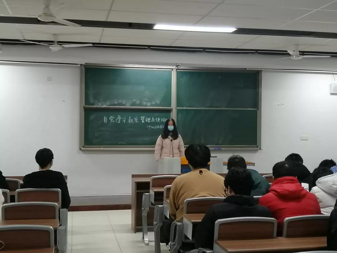 首先組織召開的是自覺遵守教室管理及使用規(guī)范主題班會。在班會上,楊宏娟同學(xué)向大家介紹了教室是我們學(xué)習(xí)的重要場所。在整潔、優(yōu)雅、舒適的環(huán)境中學(xué)習(xí),學(xué)習(xí)效率得以有效提高。