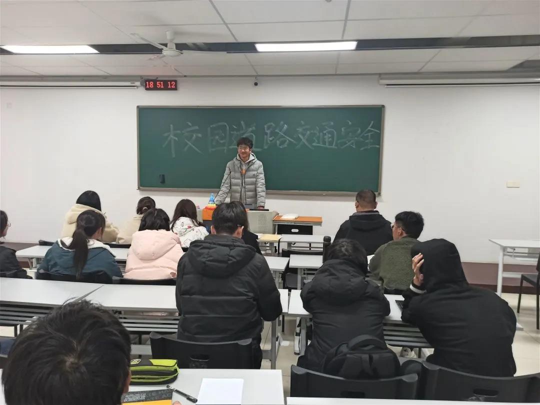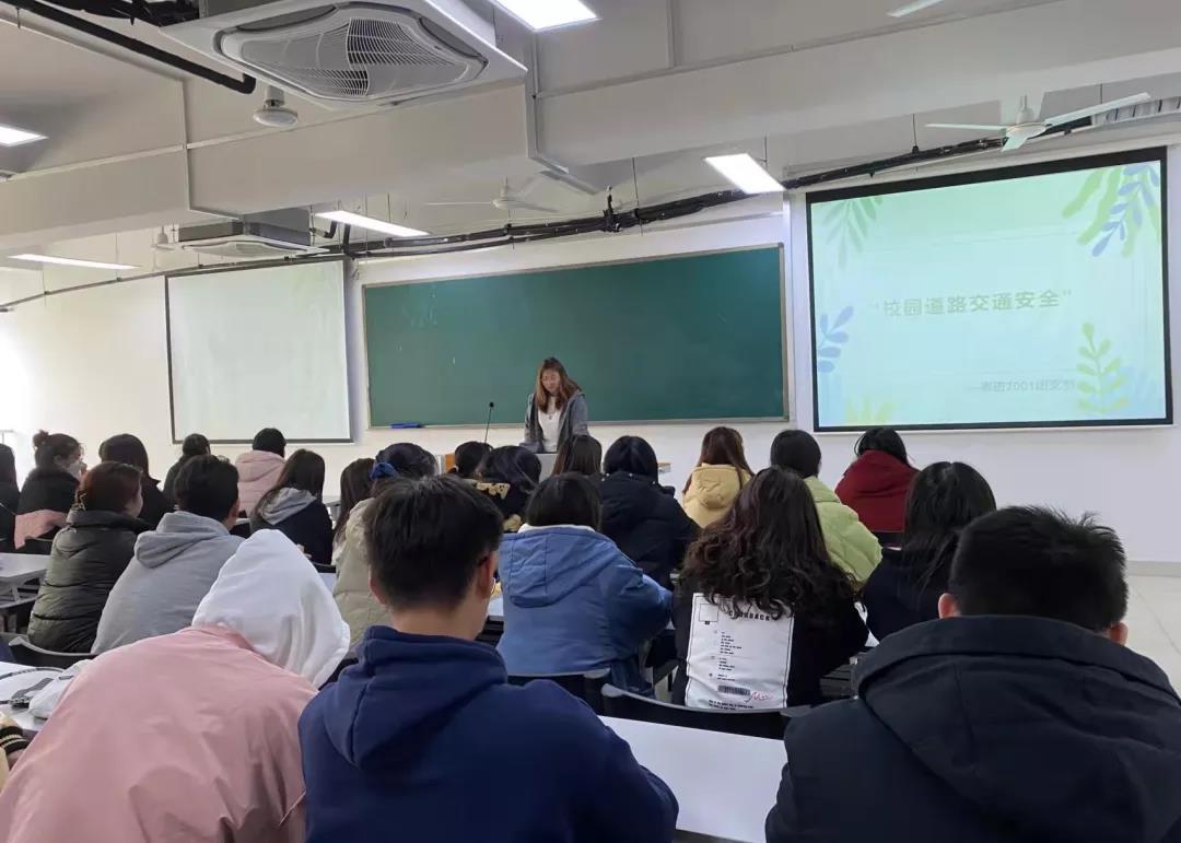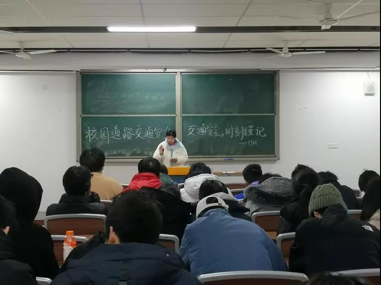 校園道路交通安全班會上,團(tuán)支書張敏同學(xué)通過事例分析,警醒同學(xué)們提高自身交通安全意識。