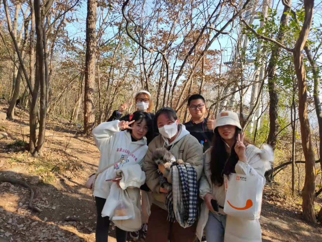 雖說即將冬至但陽光格外明朗,枯黃的樹葉飄落,堆積在樹下,景色略顯蕭條,可絲毫不影響同學(xué)們登山的熱情。同學(xué)們自行前往白馬公園南廣場(chǎng),待全員到達(dá)后,便整裝向山頂進(jìn)發(fā)。此次登山活動(dòng)按部門分組登山,一個(gè)部門為一小組,進(jìn)行爬山競(jìng)賽。