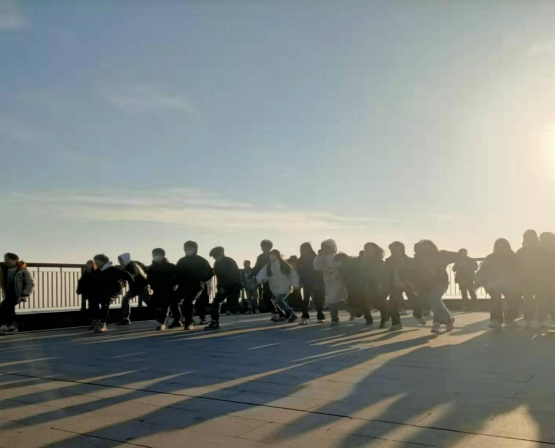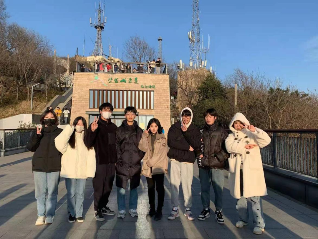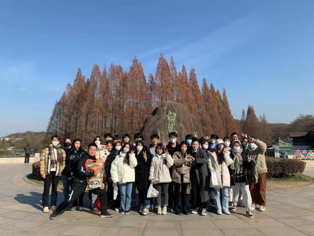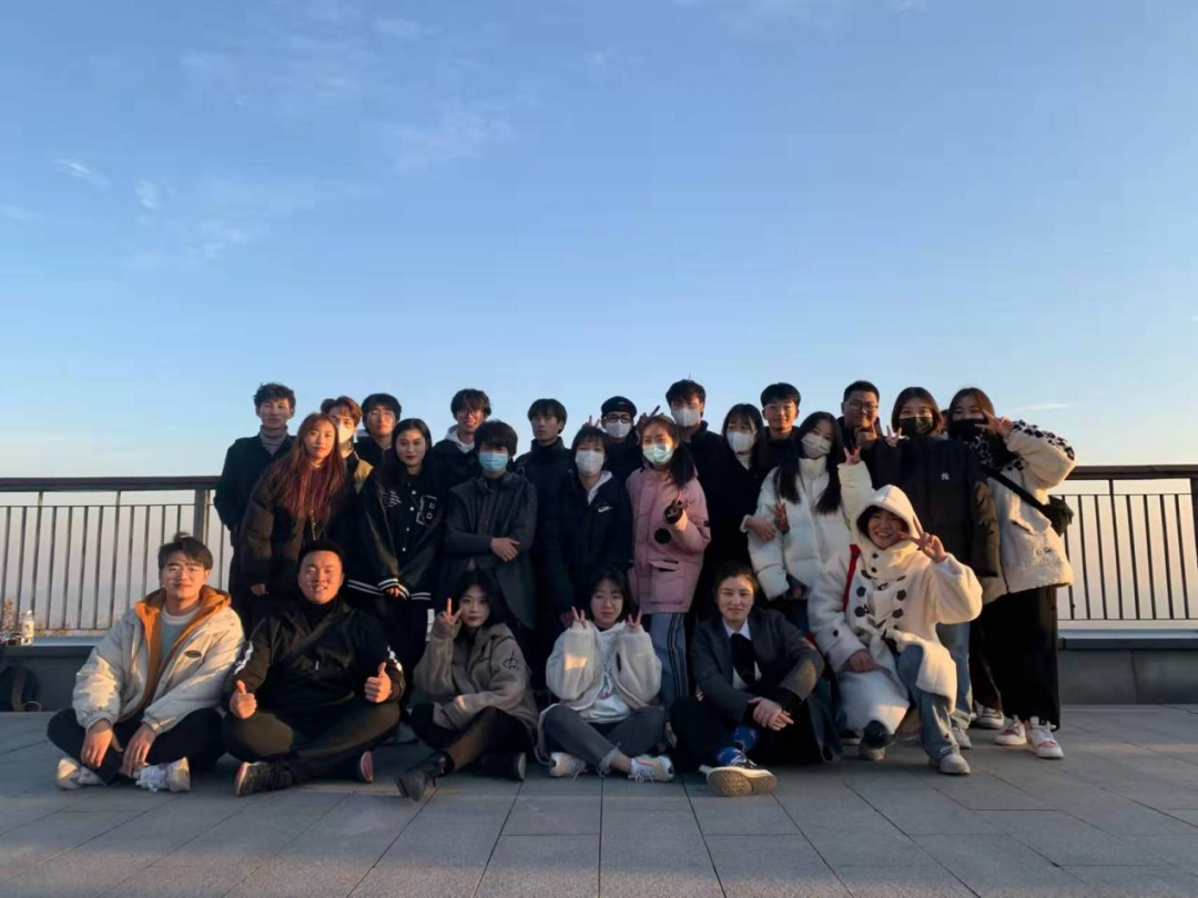 伴隨著同學(xué)們的歡聲笑語,夕陽染紅了天邊,溫暖的光線映照著紫金山,同學(xué)們都被美麗的日落所吸引,紛紛拍照留念。夕陽就像懸在空中的一枚“咸蛋黃”,將它拿捏在了手機(jī)相冊(cè)中。隨后全體同學(xué)拍攝合照,氣氛十分愉悅。