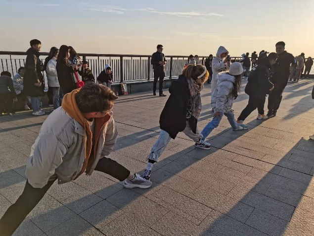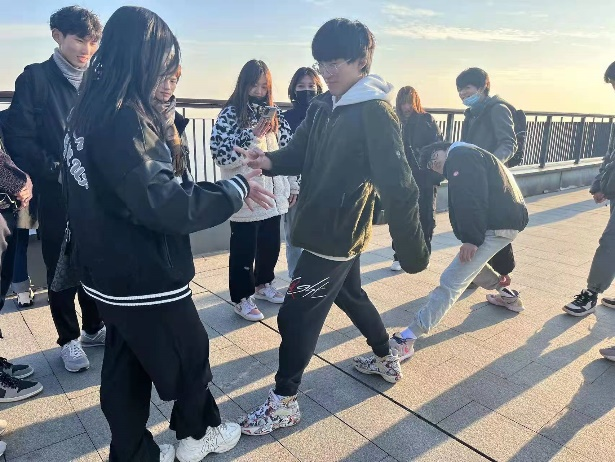 首先進(jìn)行了一二三木頭人的游戲共三局,雖然山頂?shù)娘L(fēng)吹的人連連打顫,但依然不能減少同學(xué)們的熱情,大家積極參與了活動(dòng),快樂的氛圍也引得過往的路人傳來陣陣笑聲。